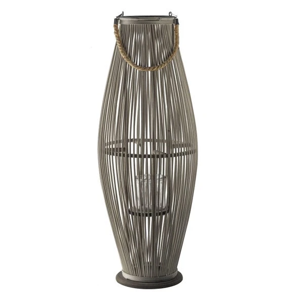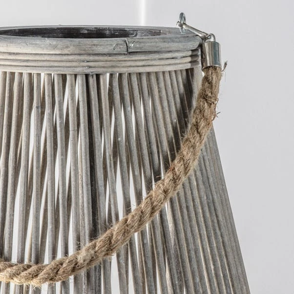 Light up your home with this stunning Paxhill Lantern, beautifully crafted from rattan with an elegant shape that if is perfect to place in any space of your room. A glass cylinder stands on a central platform to enclose the candle, lovely shadows are cast from the candle, giving a delightful effect in your home. This beautiful large lantern is also available in a smaller version, pair them together to create a beautiful candlelight lantern display in your home. Both sizes are offered in a grey and natural finish to compliment with your home décor.