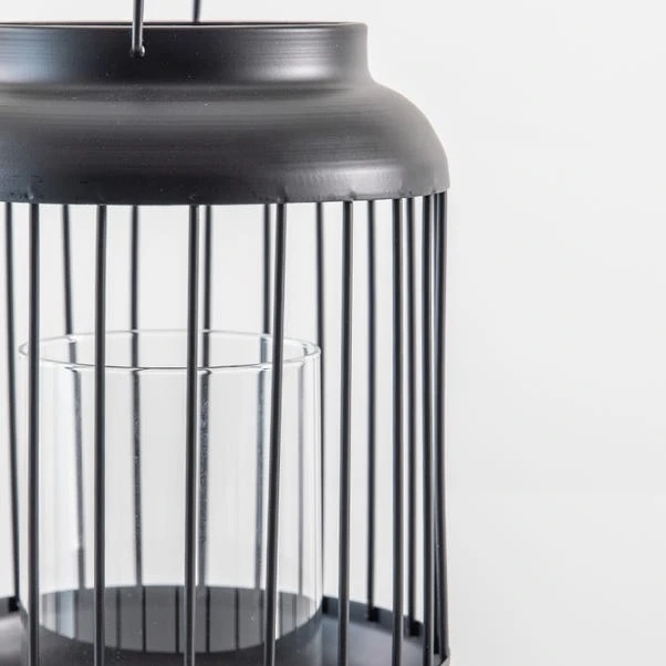 Enhance any indoor or outdoor space with this stunning Selling Black Lantern, beautifully crafted with a stylish wire design and a glass inner candle holder. This modern contemporary lantern is perfect for placing candles and it comes complete with a black metal handle for an added decorative touch. Available in a larger size, perfect for pairing together to create a stunning decorative display.