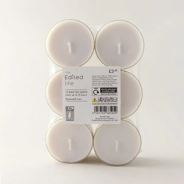 Sold as 12 packs, these eco tealights are made of a 100% natural blend of rapeseed wax and rapeseed oil for a cleaner, longer burn. Burning for up to 8 hours, they provide a calming glow in the home. The plastic cup is fully recyclable, making this set ideal for every home.