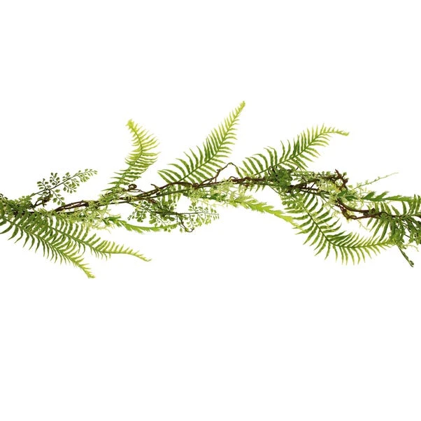 This stylish artificial fern garland has a modern green colourway that will complement an array of home decors beautifully. The realistic-looking garland is easy to maintain can be displayed in any room of the house, to give a fresh pop of colour.