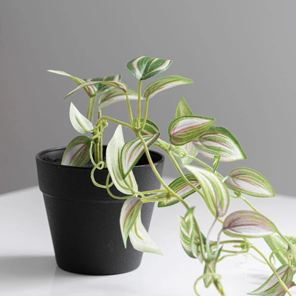 The perfect way to add a touch of greenery in your home, this beautiful artificial trailing Tradescantia plant features realistic detailed leaves placed inside a simple and stylish black pot. Perfect for complementing an array of home decors beautifully. Whether its placed on its own, or amongst a flower display, this is the ideal piece for any room of the house.