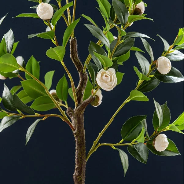 Featuring delicate and detailed cream flowers, this beautiful camellia tree set in a stylish pot is ideal for display in a planter for a more unique and personalised look. The low maintenance piece will bring the outside in, adding a fabulous look to any room of the house.