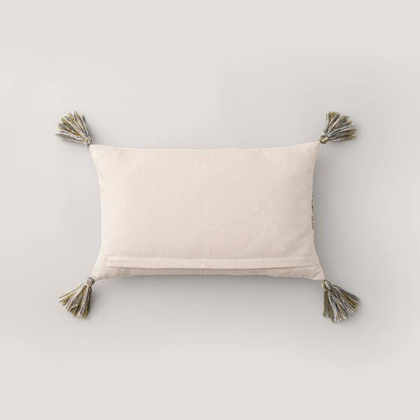Finished with a plain reverse made from 100% cotton, this rectangular, monochrome Barkby Boucle cushion from our Churchgate collection has a woven textured band across the front for added style. Designed with a contrasting tassel on each corner, the cushion comes complete with an inner generously filled with duck feathers, for maximum comfort.