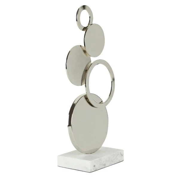 Perfect for adding a touch of contemporary class to your space, this gorgeous sculpture features a shiny chrome finish, complete with a sturdy polyresin base with a realistic marble finish. Perfect for enhancing any modern space.