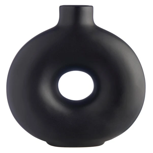 Bring a touch of minimal, modern quirkiness to your home décor with this fun donut shaped vase. Available in a range of colour options, this glazed finish ceramic vase will blend into your current home décor colour scheme whilst adding shape and a curved silhouette. With easy to wipe clean qualities and unique shape, this vase will be easy to maintain and catch the attention of all your house guests.
