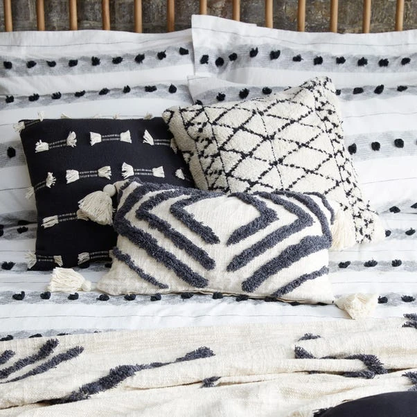 Boasting a stylish geometric charcoal tufted design, this cushion is perfect for adding a modern touch to your bedding. Made from 100% cotton this cushion is soft, durable, and easy to wipe clean. A matching throw is also available.
