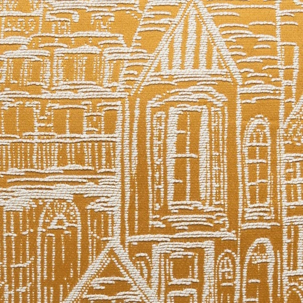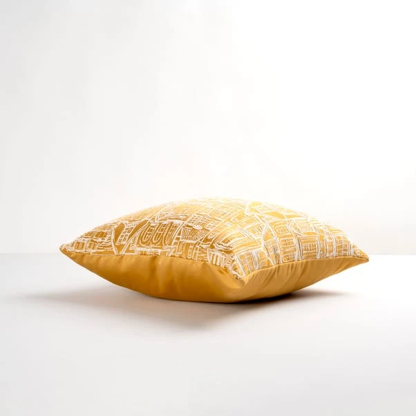 Featuring a fashionable townscape design, our modern Jacquard Houses Cushion is made from polycotton with a matching luxurious satin reverse in a modern colourway, perfect for infusing modern sophistication into any living space. The cushion comes complete with a zip and removable inner filled with recycled polyester fibre for added comfort.