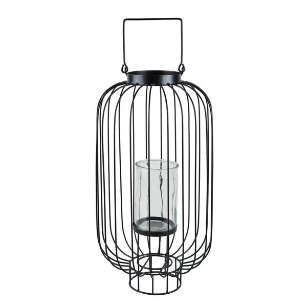 Boasting a gorgeous modern design, the Wire Cage Hurricane Lantern would add a contemporary touch to any home décor. Finished in a black colourway, this lantern comes complete with a wire handle and a clear glass candle holder.