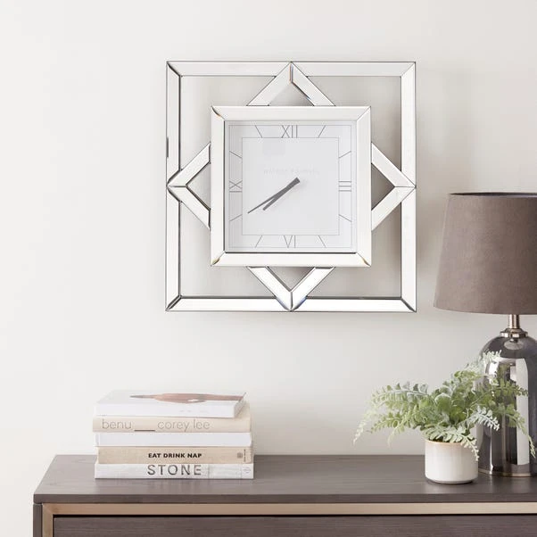 Add a glamorous touch to your home with this stunning Luxe Geo Clock, elegantly crafted with a mix of wood and glass mirror. The geo shape design features stunning glass bevelled mirrors, with a square white face clock and contrasting black roman numerals and handles. This clock will make a gorgeous centre piece in the most loved rooms of your home.