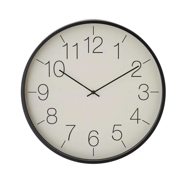 Minimalistic in design, this black framed wall clock is crafted in a classic design and features large easy to read numbers. 1 x AA battery required.