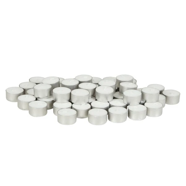 Supplied in a pack of 50, these white tealights features a burn time of up to 8 hours, a perfect to bringing in warm ambience into your home.