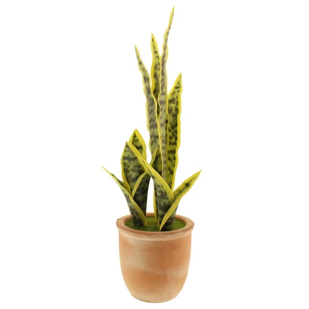 Add a pop of colour to your home with this exotic sansevieria plant in rustic terracotta pot. The highly detailed, printed leaves provide a realistic finish, making it ideal for displays on shelves, sideboards and tables.
