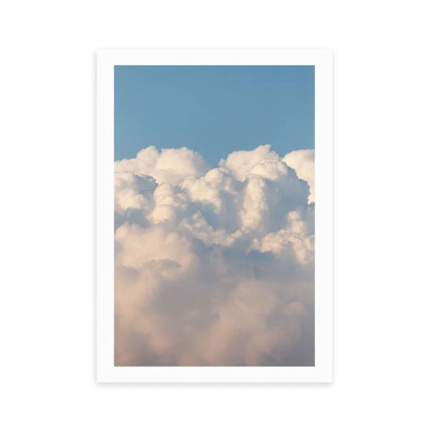 Drift away into soft fluffy clouds along a serene blue sky backdrop in this artwork by Honeymoon Hotel. Perfect for adding a calm and tranquil feeling to any living area, hallway, bedroom or office space, this print is made to last as it uses a Giclee printing process to stay vibrant and prevent fading over years. Each design is available in four print sizes and a variety of frame options, including unframed, so you can display your artwork however you wish.