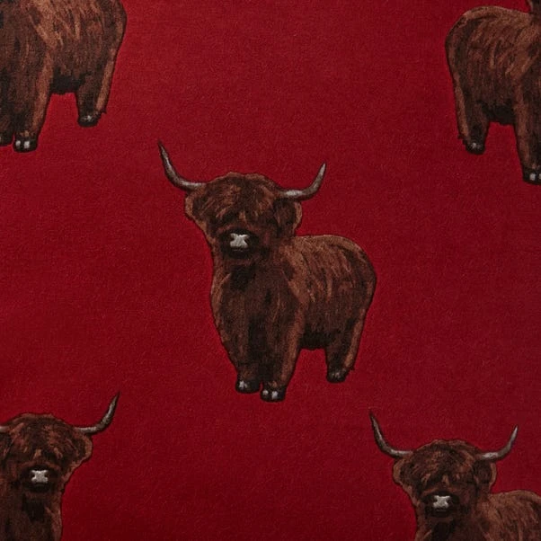 Effortlessly style up your chair, sofa or bed with the help of our Highland Cow Cushion. Featuring highland cows on a soft burgundy colour background. Complete with a soft plain reverse and a envelope closure. Made of 100% recycled cotton, this cushion is super soft yet durable.
