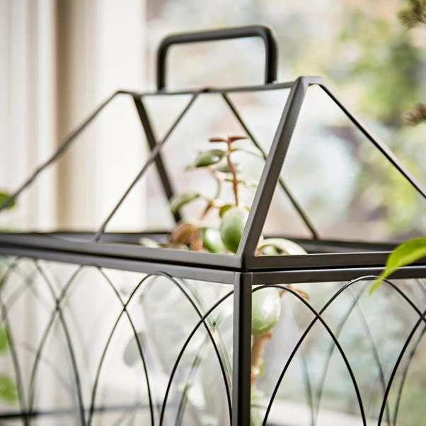 A little ‘cathedral to nature’ in its own right to showcase your favourite plants. This beautiful Terrarium is crafted with a black metal frame and reinforced glass with black metal detailing. Complete with a swing lid and handle, this versatile and stylish terrarium will make an ideal piece for any room of the house.